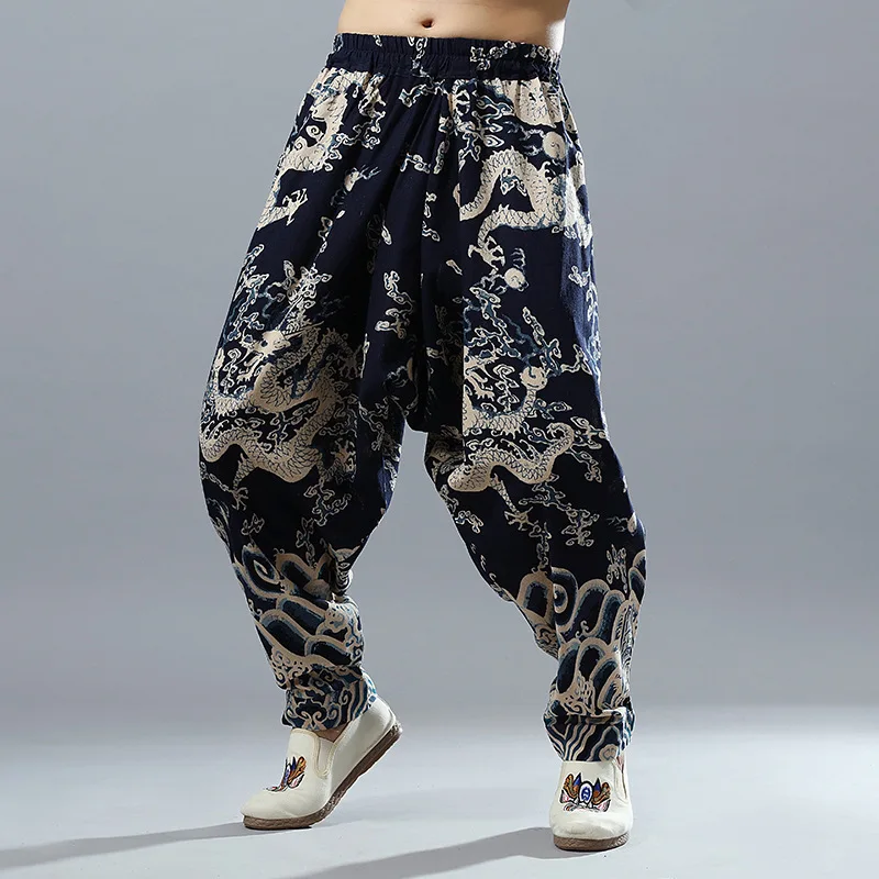 Wonderfull Nepal Indian Mens Personality Dargon Printing Cross-Pants Loose Fit Hip Hop Casual Cotton Linen Floral Harem Pants For Men Buy Online